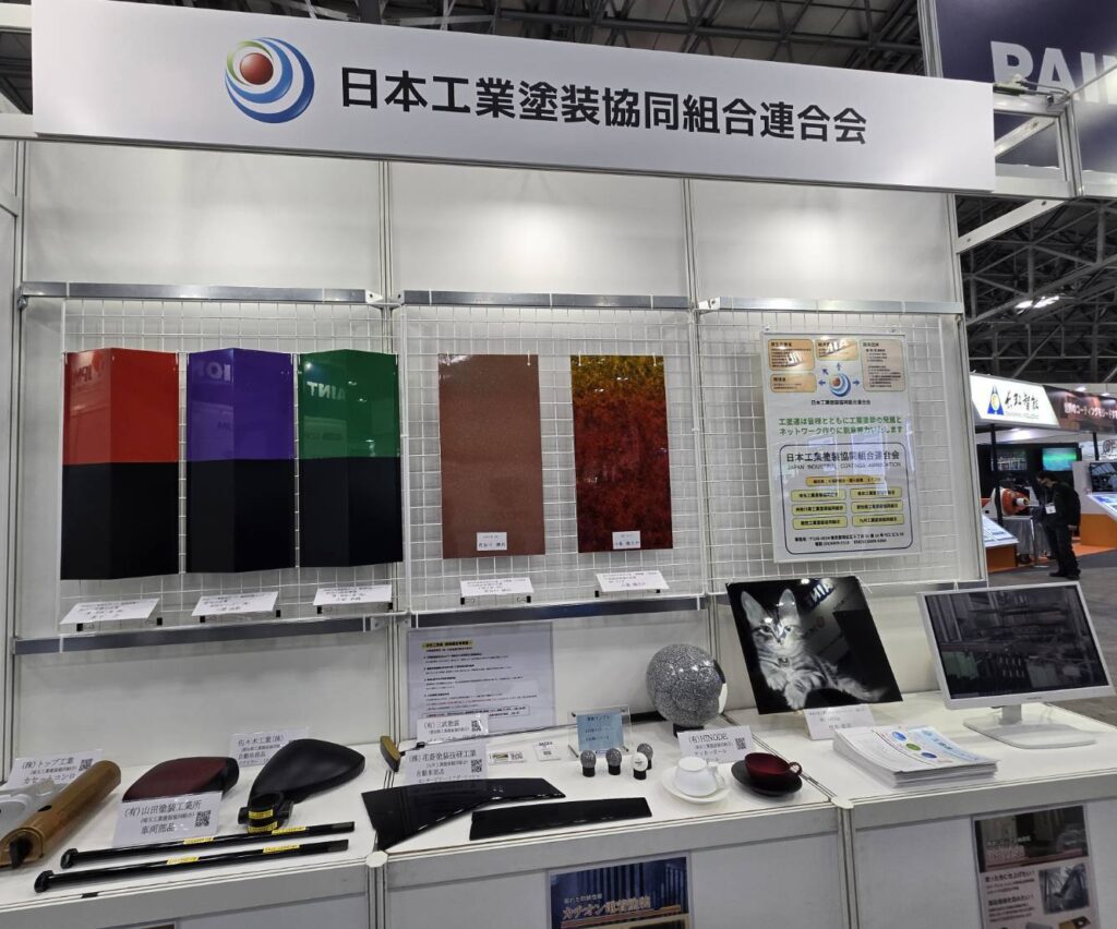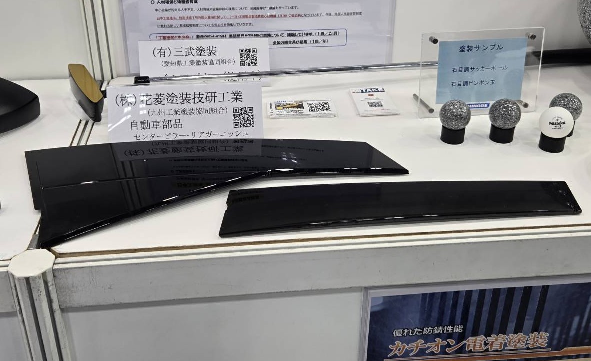 展示会への出店 Posted on: 2025年11月13日, by : 社員レポート花菱塗装技研工業 第8回塗料・塗装設備展 ―コーティングジャパン― IN 幕張メッセ 11/12~14 幕張メッセにて行われてます塗料・塗装設備展の日本工業塗装協同組合連合会ブースにて、弊社新富工場の主力製品の一部であります外観塗装部品(漆黒のピアノブラック)を展示しています。